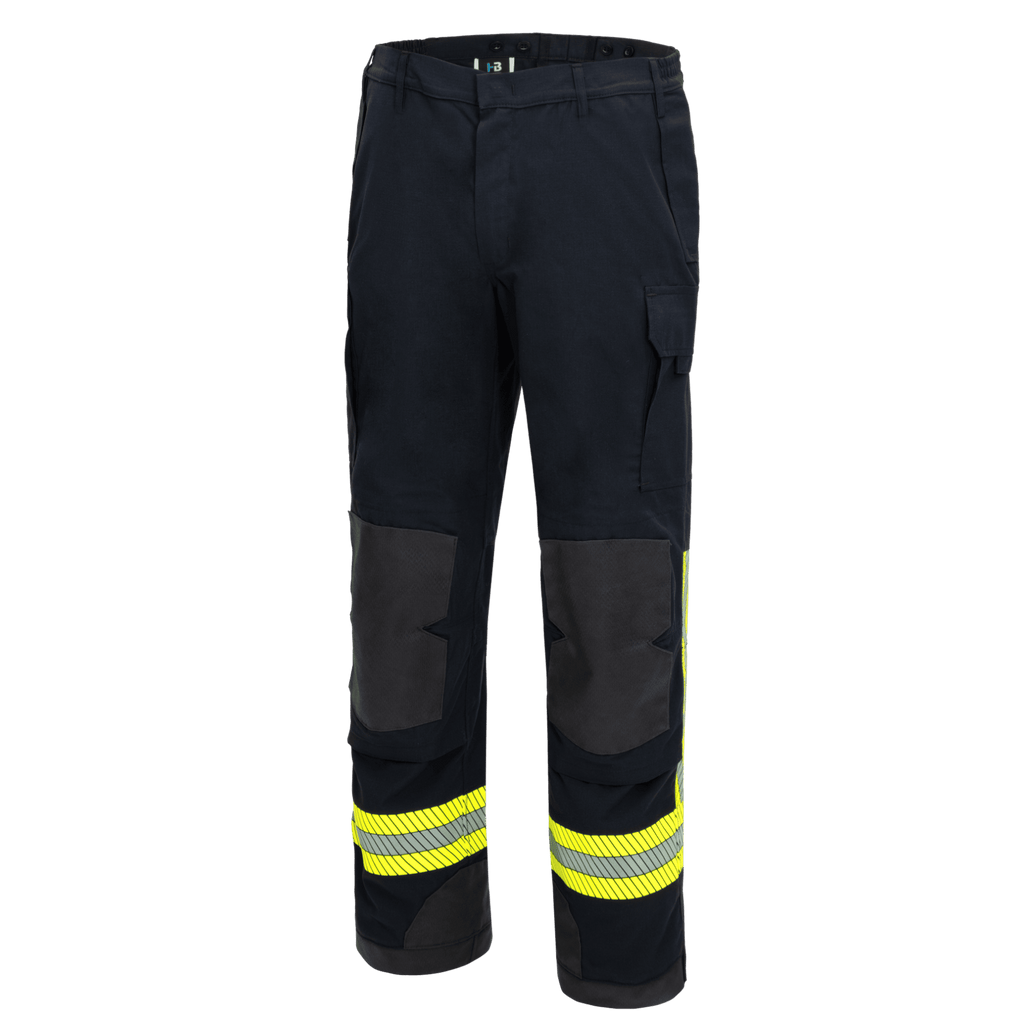 2-farbig • mit segmentierten, gelb/silber/gelben Reflexstreifen • keine Warnschutzkleidung nach EN ISO 20471 und EN 17353 • Knöpfe im Bund zum anbringen von Hosenträgern • Taillenregulierung durch Gummizug an den Seiten • verdeckter Reißverschluss • 2 Flügeltaschen • silikonbeschichteter Kniebesatz und Saumschutz • Innenbeinverstärkung • 1 Gesäßtasche • 2 Blasebalgtaschen auf Seitennaht jeweils mit Patte und Klettverschluss • 2 außenliegende Knietaschen • Saumweitenverstellung durch DK Lasche